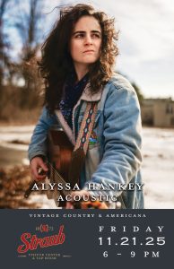 Enjoy an evening of vintage country and americana music with Western PA native, Alyssa Hankey from 6-9pm!