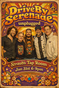 « All Events Live music w/ DriveBy Serenade January 31 @ 6:00 pm - 9:00 pm « Sunday Polka Party Winter Watercolor Class w/ Janet VanEerden » Join us for a fun night of classic rock with local musicians DriveBy Serenade from 6-9pm! Add to calendar Google Calendar iCalendar Outlook 365 Outlook Live Details Date: January 31 Time: 6:00 pm - 9:00 pm Venue Straub Brewery Visitor Center and Tap Room 444 Brusselles Street St. Marys, PA 15857 United States + Google Map Phone 8148342876 View Venue Website