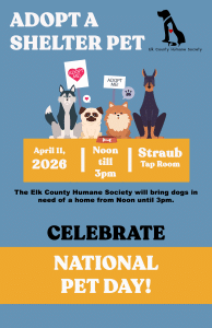 Join us on April 11, 2026, from Noon to 3 PM as the Elk County Humane Society brings lovable dogs in need of forever homes right to the taproom. Whether you’re ready to adopt or just want to stop by and show some love, this is the perfect opportunity to meet your new best friend.