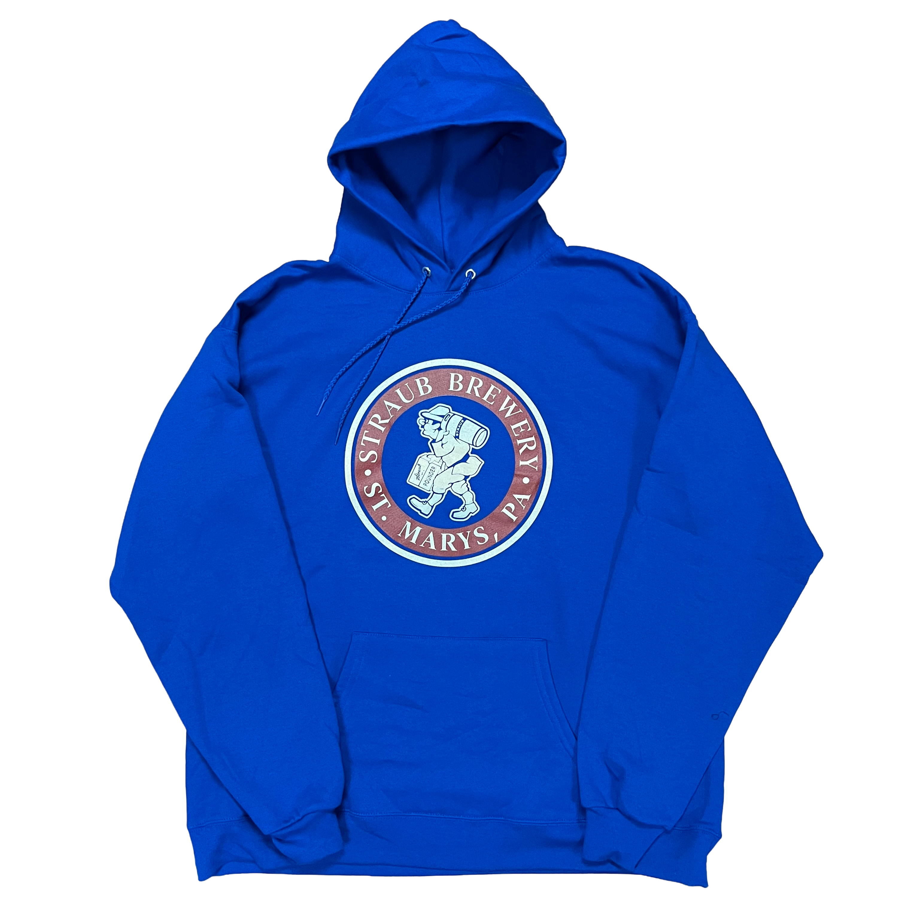 This Hanes Eco-Smart Blue Hoodie showcases our iconic Bavarian Man on the front and is sure to be a Fan Favorite! 50% Cotton 50% Polyester