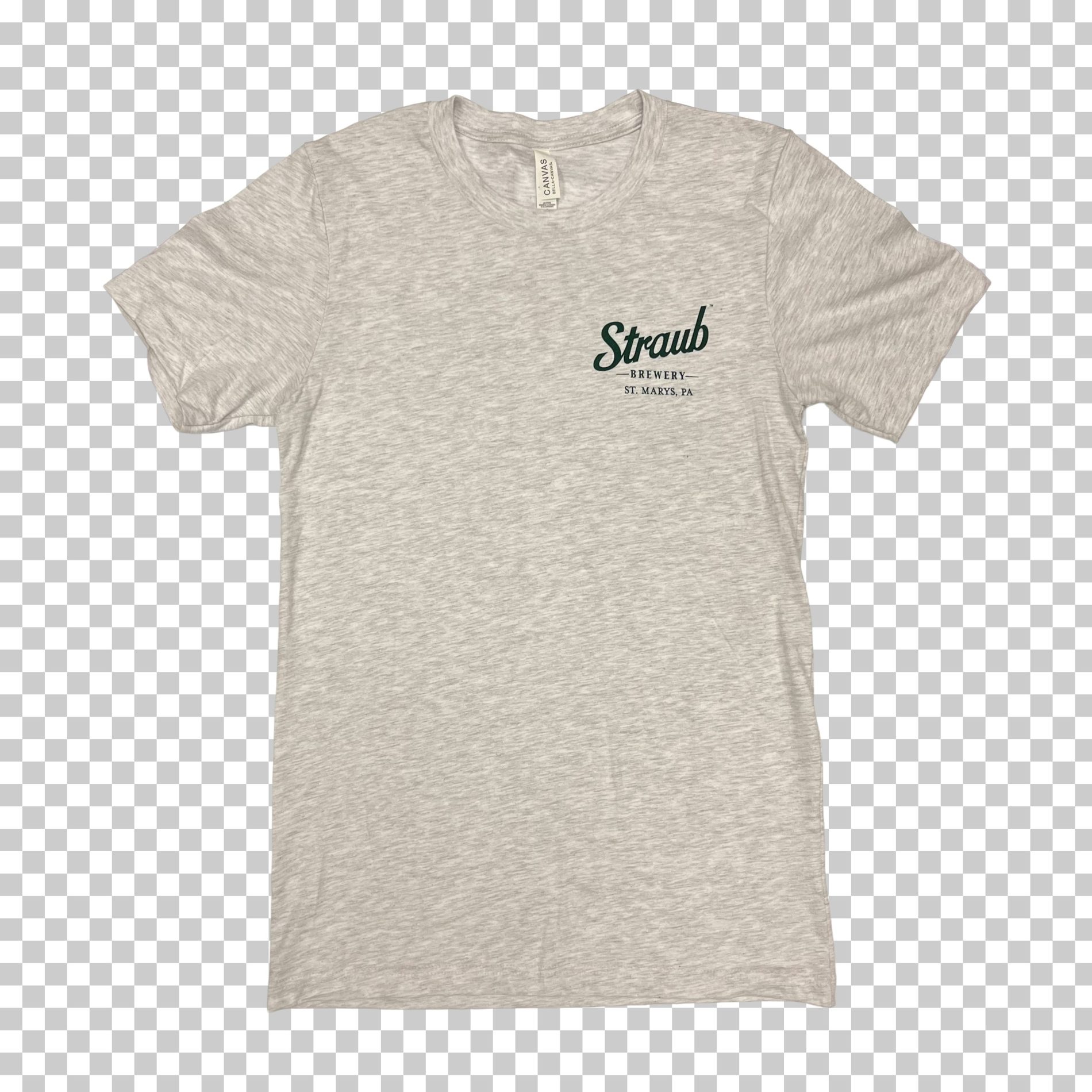This super soft Bella Canvas tee has the Straub Logo on the chest in the front and the Bavarian Man in Red and Green on the back.